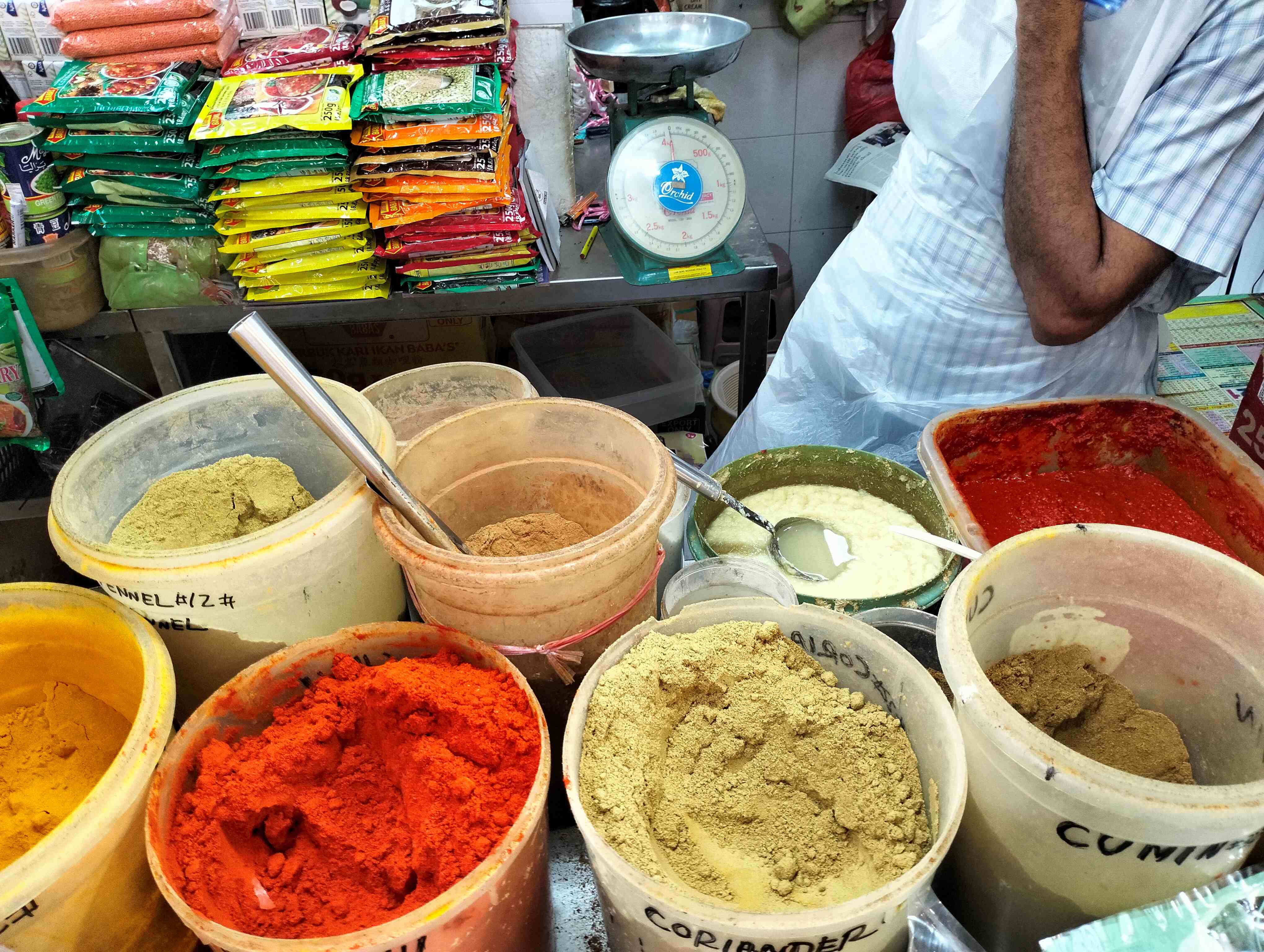 Markets: Tekka Market in Little India operates as a two‑level municipal market complex with a wet market on the ground floor and a hawker centre above. The downstairs market carries high‑turnover vegetables, herbs, spices, tofu, noodles, poultry, and seafood, with stock replenished daily through local household demand. The seafood section receives early‑morning coastal landings, and the spice vendors supply bulk quantities of dried spices and curry blends (they will mix you a blend to order which is what I do) at lower prices than supermarkets. The hawker centre upstairs provides reliable, low‑cost meals with fast turnover, allowing crews to combine provisioning and meals in a single stop. Its location beside the Little India MRT interchange makes it accessible from all marina districts.