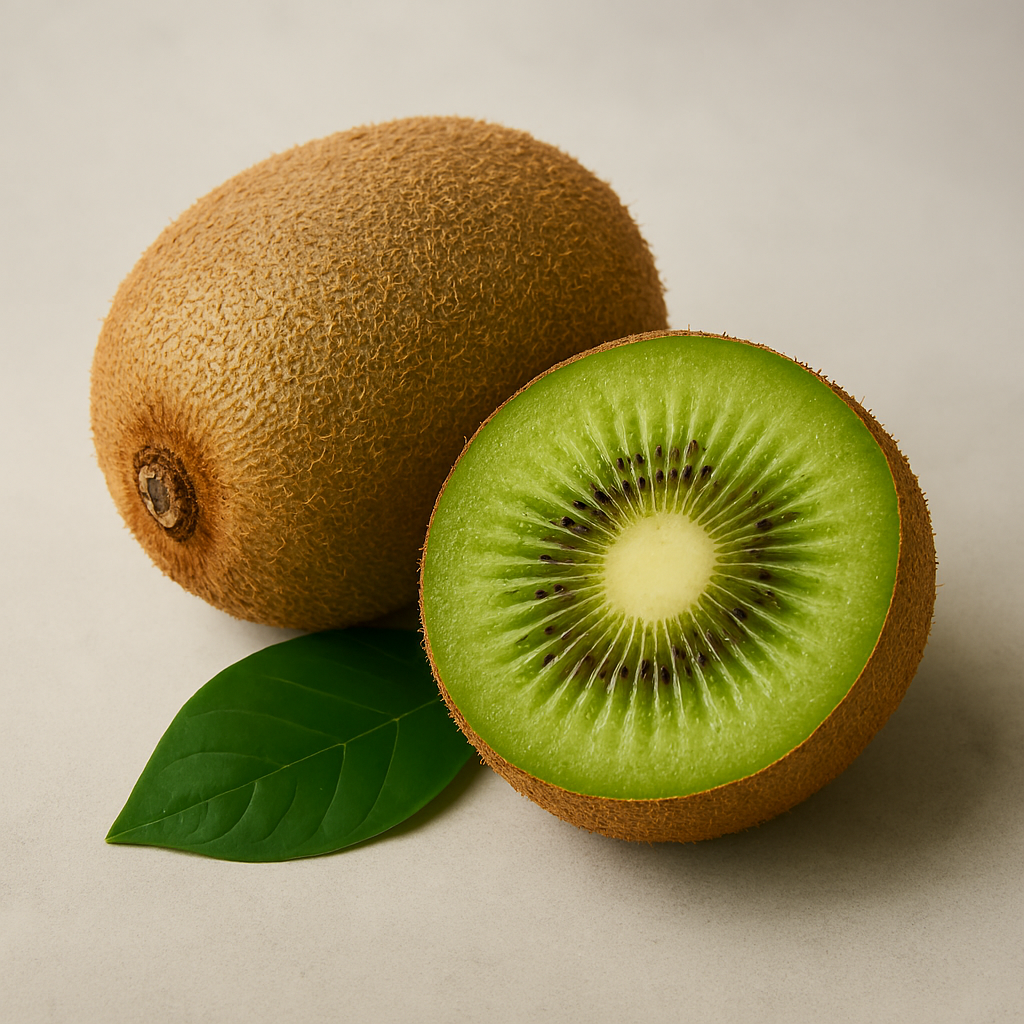 This has its origins in China. It was known as the Chinese gooseberry. It is a small, fuzzy brown skinned fruit. It has a vibrant bright green or golden flesh, soft texture and rows of small black edible seeds. It is packed with vitamin C, fiber, and antioxidants. It has a sweet, tangy tart flavor with a unique aroma. It is eaten raw, sliced into salads, desserts, or smoothies.