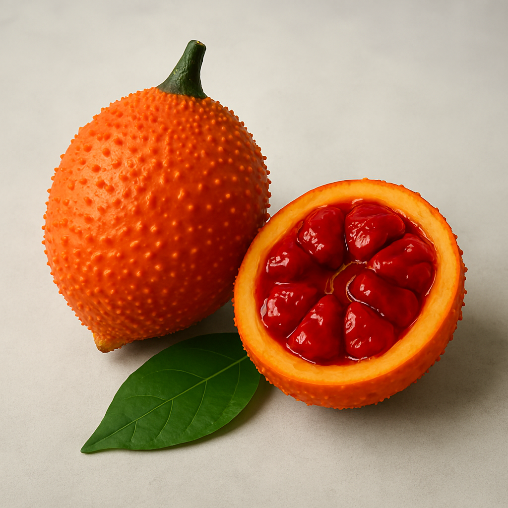 This a rare tropical fruit native to Southeast Asia (Vietnam, Thailand). The fruit has a bright red to orange skin when ripe. The thick pumpkin like flesh has orange-red aril surrounding seeds and the pulp is soft and oily. It has rather bland flavor that is mild, and slightly sweet. Used in Vietnamese cuisine especially during Lunar New Year celebrations for its auspicious red color. Used in juices and smoothies. Often proclaimed a “superfruit” for the high antioxidant density.